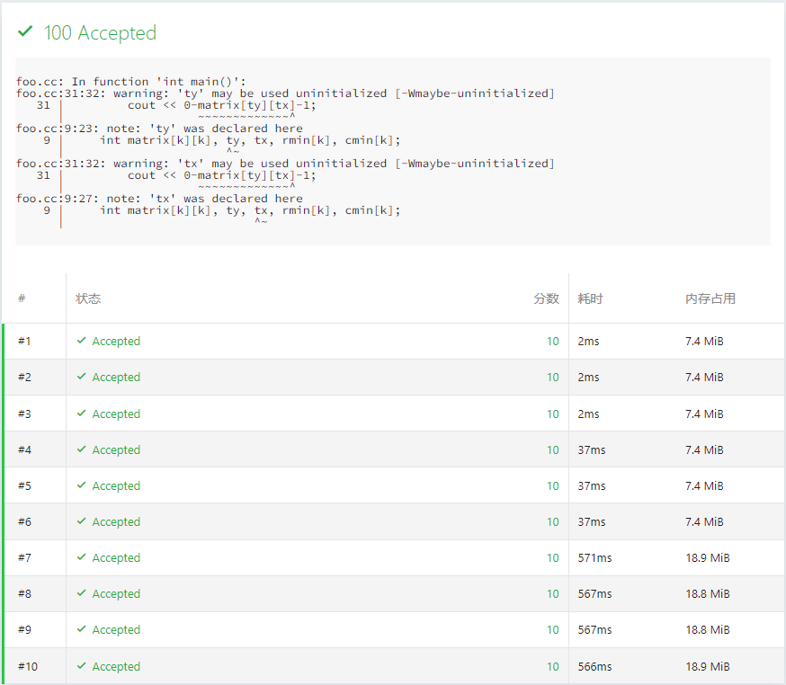 int matrix[k][k], ty, tx, rmin[k], cmin[k];