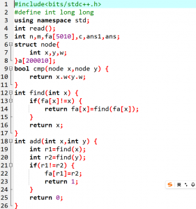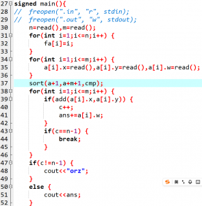 3.建一个并查集,并初始化并查集(并查集代表两个点有没有在同一个树里面)