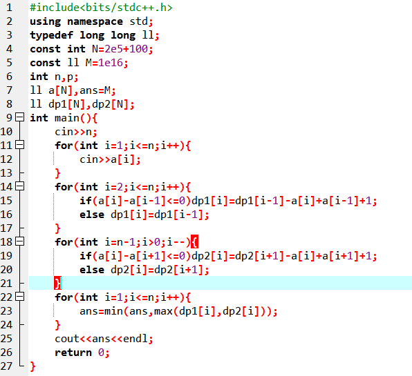 if a[i] dp2[i]=dp2[i+1]+a[i+1]-a[i]+1,
