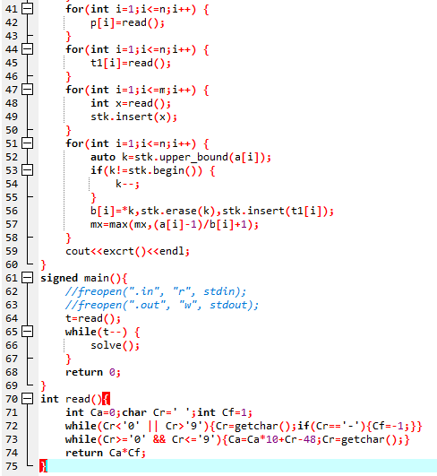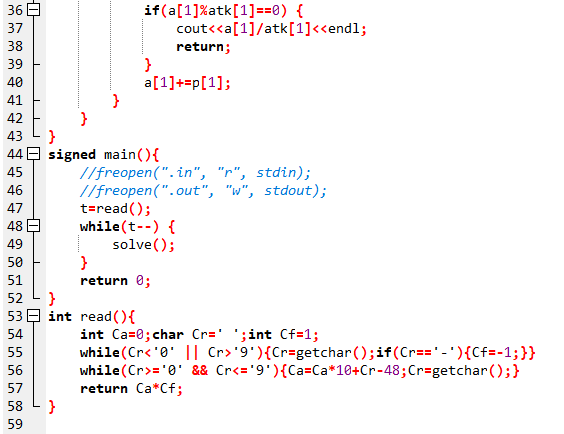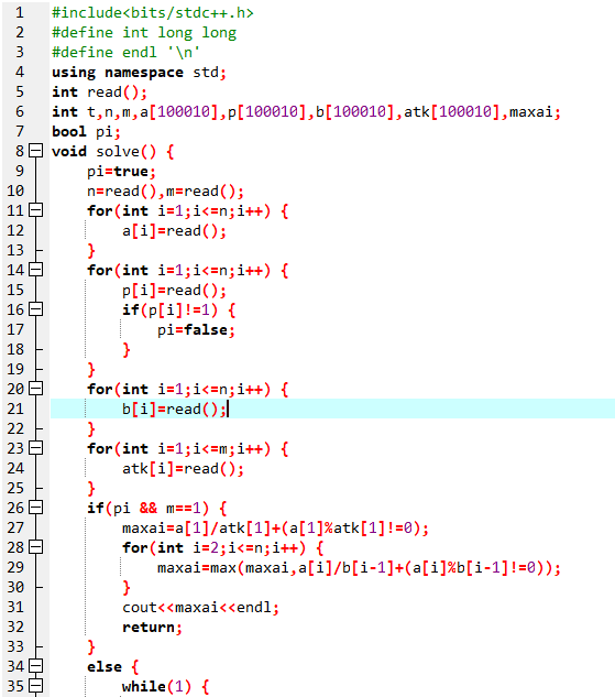 对于测试点 1 ~ 4,用为 p_i=1,所以只要求一个 x 使得 a_i-x \times atk_i \leq 0 即可
