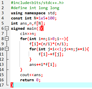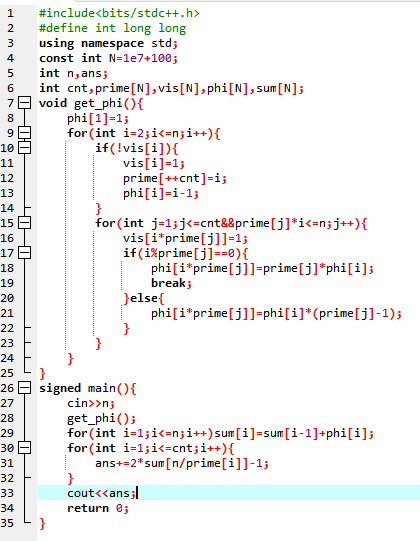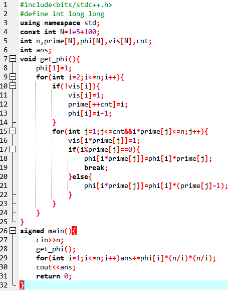 这样一来枚举d即可O(n)通过(欧拉函数用线性筛处理)