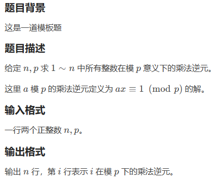 要求1~n在模p(p是质数)的乘法逆元,我们假设求解到第i个