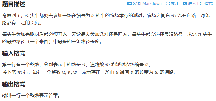 这题可以存反图,分别求出x到各点在正图和反图中的最小距离,再加起来,及来回距离,最后比个大小就行