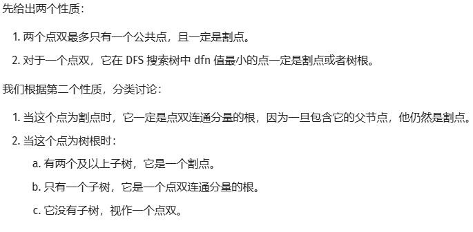 对于点双连通分量的求法,我们先看一下OI_WIKI给的一些性质