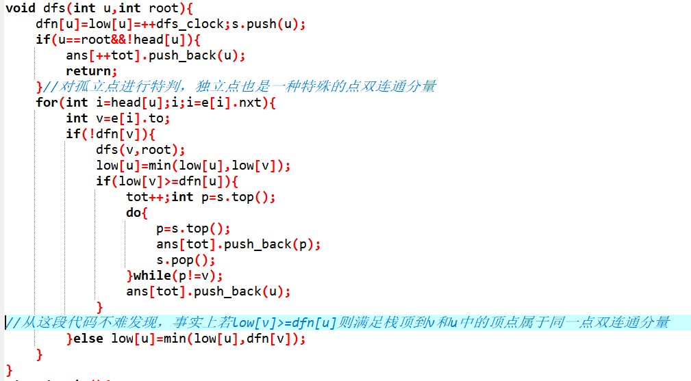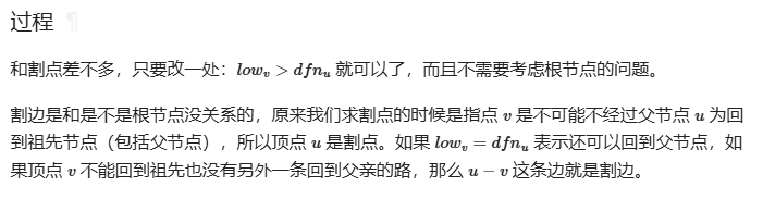 对于割点的求法,判断是否有low(v)>=dfn(u),v∈T(u)若有,则u为割点