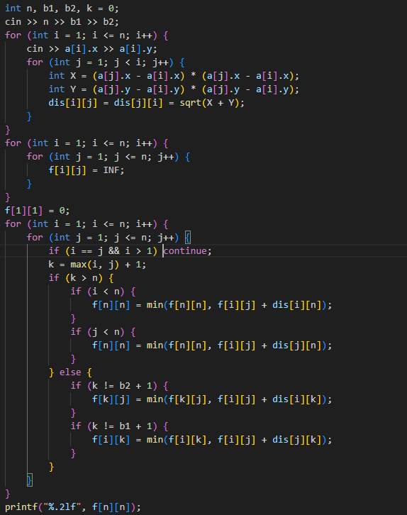 中山纪念中学 Day19 Posted on 2025年8月13日2025年8月13日 By 杨 明浩(D23ymh) 中山纪念中学 Day19无评论 比赛日,又场切T1啦 T1 DP,不想打字了,直接放代码 Code T2 传送门 在看完题解后我们可以发现,本体就是求该图的最小重复路径点覆盖的路径条数。在二分图中,最小路径点覆盖的路径条数等于总点数减去最大匹配数;最小路径重复点覆盖的数量则需要先求传递闭包,再计算最小路径点覆盖得出。所以跑一遍Floyd传递闭包,再跑一遍匈牙利算法就好了 T3 不会 T4 传送门 不会 T? 晚上打了点二分图匹配的一些题,还做了点其他题目,离开倒计时Two Days 训练日志